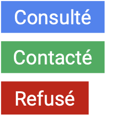 Des étiquettes permettent de suivre pour chaque logement lorsque son profil est vu, contacté ou refusé par le ou la propriétaire.
