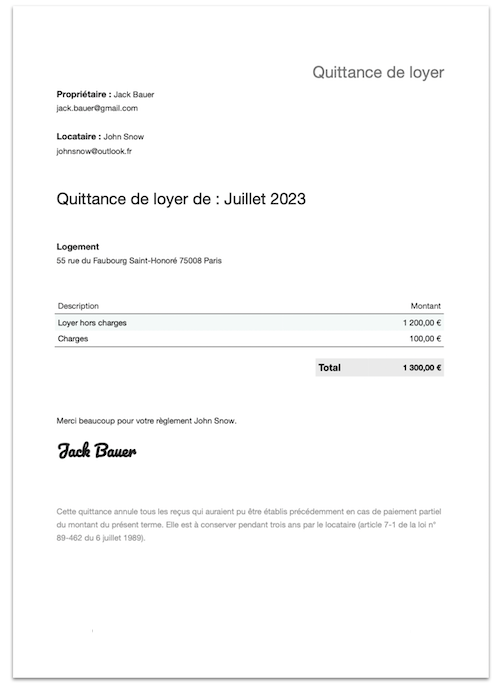 Créez votre quittance de loyer au format PDF en 1 minute chrono.